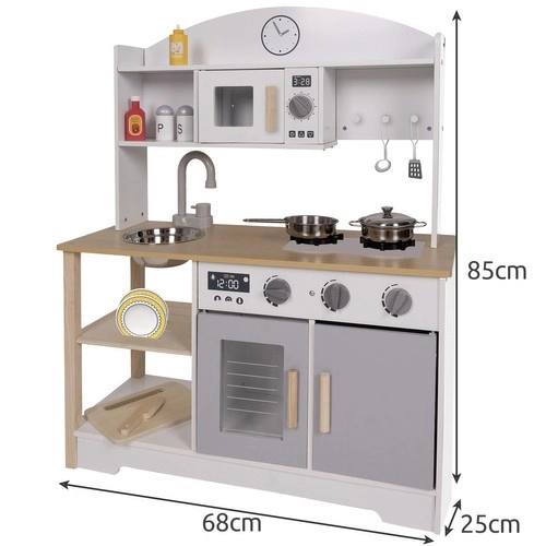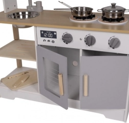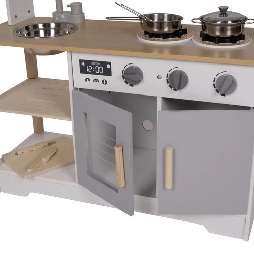 ANALÓG ÓRA + Hangok - az analóg óra a gyermek szemmagasságában található, a mutatók mozgathatók, így a gyermek megtanulhatja az időt, a főzőlapok és a mikrohullámú sütőa tárcsák kapcsolásakor kattannak! Gyermeked el lesz ragadtatva – a konyha órákig tartó gondtalan játékot biztosít.