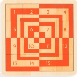 - 2 az 1-ben tolóelemes fa kirakó (motívum + Tizenötös játék)