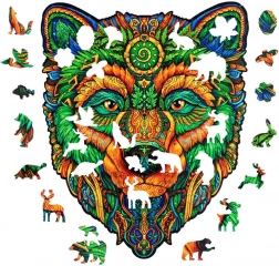 Egyedi fa puzzle Bölcs Medve motívummal, amely új kihívást jelent a különleges alakú daraboknak és a lézeres részleteknek köszönhetően. Élvezze a kirakást sima szélekkel és kiváló minőségű kidolgozással.