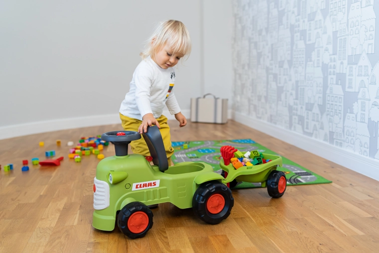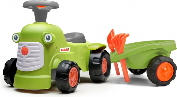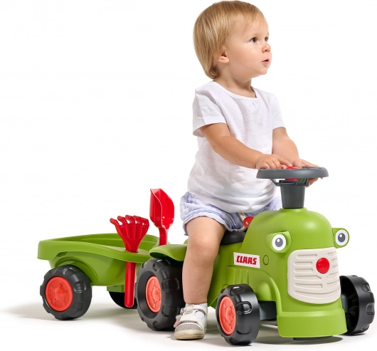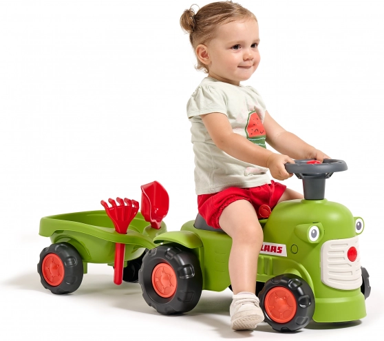 Fedezze fel a masszív lábbal hajtós járművet a jól ismert mezőgazdasági márka, a CLAAS dizájnjában, világoszöld színben. A gyerekek imádni fogják a kormány és a duda könnyű kezelhetőségét, a szülők pedig értékelni fogják a biztonságos, stabil kialakítást. Az utánfutó helyet kínál játékoknak, és praktikus kiegészítőkkel érkezik – gereblyével és lapáttal.