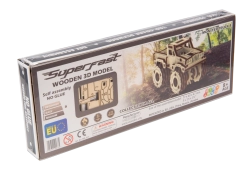 Ez a fa 3D puzzle, a MONSTER TRUCK 3, egyedülálló építési élményt kínál – ragasztó nélkül, rendetlenség nélkül, maximálisan pontos kivágásokkal. A modell az USA hadserege által használt első háború utáni teherjárművekből merít, és autentikus terepjárós megjelenést nyújt nagy kerekekkel és masszív fülkével.