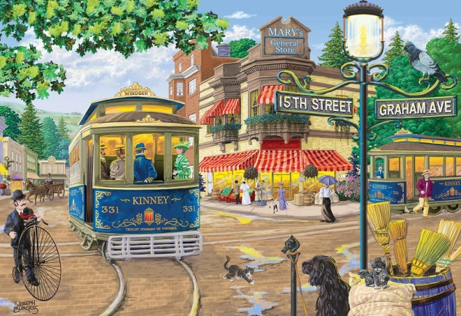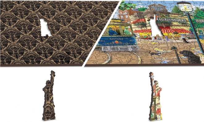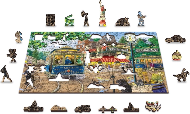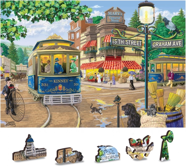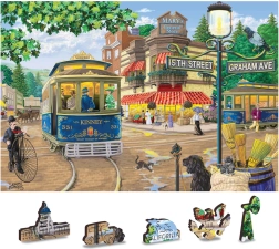 Ez a prémium fa puzzle egy hangulatos jelenetet ábrázol retró villamossal és korhű részletekkel teli utcával. A lézervágott elemeknek köszönhetően a sima élek egyszerre teszik örömtelivé és kihívássá az összerakást. A kétoldalas kivitel lehetővé teszi a kirakást az előoldalon a motívum szerint, vagy a hátoldalon az ismétlődő minta alapján.