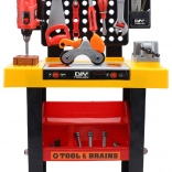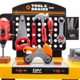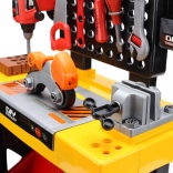 Fúró, fűrész, kalapács, csavarhúzók, kulcsok, csavarok, anyák és csatlakozók – minden, amire a gyerekeknek szükségük van a kreatív építéshez és szerepjátékhoz.