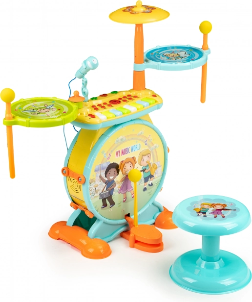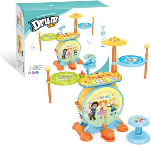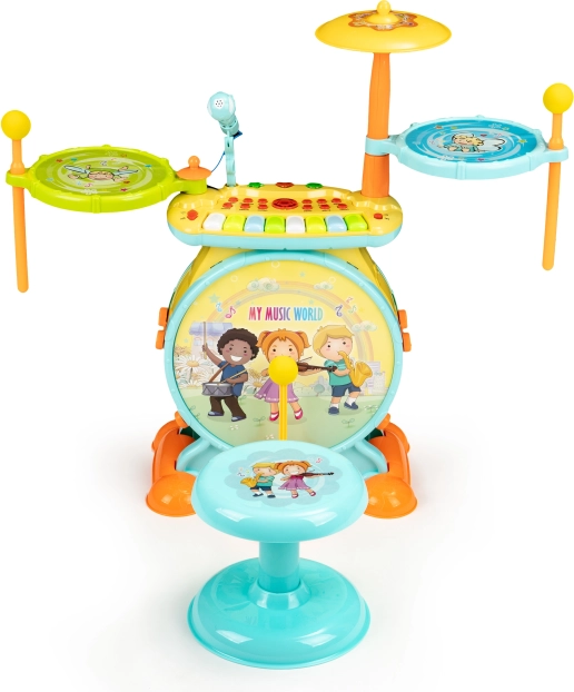 Engedje, hogy gyermekei elmerüljenek a dallamok világában, és saját dalokat komponáljanak ezzel a lenyűgöző hangszerkészlettel. A gyerek dobbal felszerelt szett úgy néz ki, mint egy igazi hangszer, és kényelmes ülőkét is tartalmaz a kényelmes játékhoz. A gyerekek lelkesek lesznek a készlet nyújtotta lehetőségektől, beleértve a karaoke funkciót és a telefon vagy mp3 lejátszó csatlakoztatását.