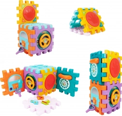 Az egyik oldal gombokkal van ellátva, amelyek vidám dallamokat és hangokat játszanak le. A gomb megnyomására a kocka közepe különböző színekben világít a dallam ütemére.