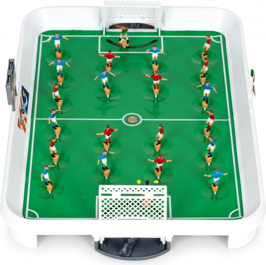 Ez az asztali foci izgalmas és gyors játékot biztosít, amely felejthetetlen szórakozást kínál gyerekeknek. Tartalmaz autentikus matricákat különböző állami zászlókkal, amelyek lehetővé teszik saját nemzetközi tornák létrehozását.