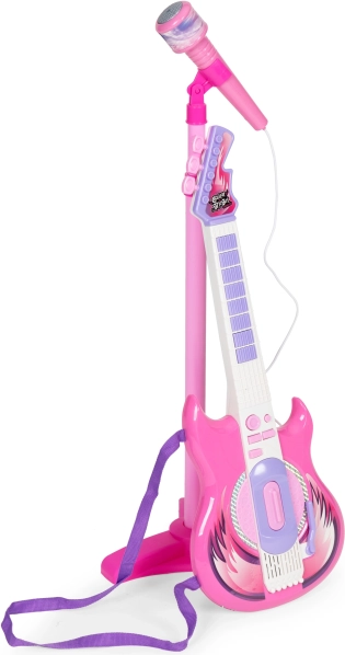 Az elektromos gitár és a mikrofon állvánnyal segítenek a zene iránti érdeklődés, kreativitás és a gyerekek koordinációjának javításában.
