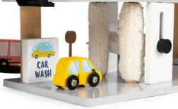 A garázs strapabíró fából készült, simára csiszolt, biztonságos élekkel. A gazdag tartozékkészlet, beleértve az autómosót és a benzinkutat, fejleszti a gyerekek képzelőerejét és meghosszabbítja a játékidőt. Ideális ajándék 3 éves kortól, amely támogatja a finommotorika, a koordináció és a logikus gondolkodás fejlődését.