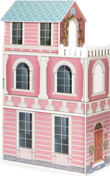 Ez a babaház illeszkedik nemcsak a gyerekszobába, hanem a nappaliba is, ahol nemcsak a házigazdákat, hanem a vendégeket is lenyűgözi kifinomult és jól megválasztott színvilágával. Ezenkívül a szép fa részletek és a pasztellszínek támogatják a kreativitás és a kézügyesség fejlesztését.