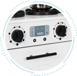 A konyha forgatható gombokkal van felszerelve a hőmérséklet szabályozásának és a főzőlapok beállításának szimulálására, ami kreatív és biztonságos játékot tesz lehetővé.