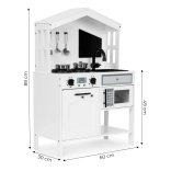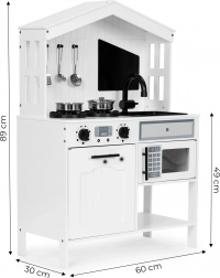 A fa konyha ECOTOYS számára 3 éves kortól tökéletes módja annak, hogy fejlessze a gyerekek fantáziáját és kézügyességét. A konyha rengeteg valódi konyhai funkciót kínál, beleértve a forgatható gombokat, amelyek lehetővé teszik a gyermekek számára a sütő és a főzőlapok hőmérséklet-szabályozásának szimulációját. Biztonságos, köszönhetően az éles szélek hiányának és a kiváló minőségű anyagokból készült stabil szerkezetének.