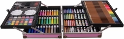 A készlet tartalma különféle technikákhoz lett összeállítva – a finom skicceléstől a határozott filcvonalakon át a fedő akrilfestésig vagy a könnyed akvarell átmenetekig. A fémmerevítésekkel és zárakkal ellátott masszív bőröndnek köszönhetően a szállítás biztonságos és kényelmes, legyen szó otthonról, iskoláról vagy utazásról.