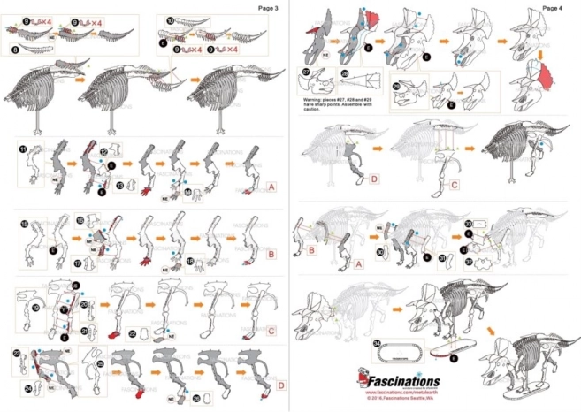 Az egyes alkatrészeket távolítsa el a fémlapokról; szükség esetén használjon kis oldalcsípő fogót (nem tartozék). Az elemeket reteszekkel kell egymáshoz rögzíteni, amelyek egy fülből és egy nyílásból állnak. A fület kis, vékony csípőfogóval vagy laposfogóval (nem tartozék) hajlítsa meg, és fokozatosan zárja össze az összes reteszt, míg egy rendkívül élethű mestermű nem születik!