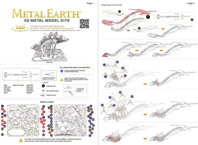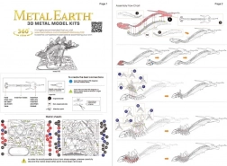 Az egyes alkatrészeket vedd ki a fém lapokból, szükség esetén használj kis csípőfogót (nem tartozék). Az elemek rögzítése a fülecskékből (kampókból) és lyukakból kialakított zárakkal történik. A fülecskéket kis, vékony fogóval hajlítsd meg (nem tartozék), és fokozatosan illeszd össze az összes zárat, míg egy rendkívül valósághű remekmű nem születik!