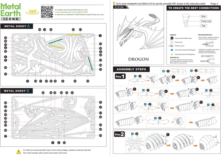Izgalmas kihívás, összeállítás közbeni élmény és lenyűgöző végeredmény – ilyenek a METAL EARTH modellek! Az ICONX Game of Thrones prémium sorozat modellje még kifinomultabb részletkidolgozásával fog elbűvölni! A METAL EARTH ICONX 3D puzzle építése türelmet és ügyes kezeket igényel. A végeredmény azonban bőven kárpótol a befektetett erőfeszítésért! A miniatűr replikák különösen hatásos és figyelemfelkeltő díszek nemcsak otthon, hanem irodában vagy iskolában is. A 21 x 11 cm-es acél téglalap lemezekből, amelyek a világ emlékműveinek, híres járműveknek, hangszereknek vagy állatoknak az elemeit tartalmazzák, a kezei között részletgazdag, lenyűgöző modellek kelnek életre. A METAL EARTH ICONX 3D puzzle autentikus megjelenését a részletes lézergravírozás biztosítja. A csomag 2 acéllemezt és összeszerelési útmutatót tartalmaz. Szerszámok nem részei a csomagnak. Munkamenet: Az egyes alkatrészeket távolítsa el a fémlemezekből; szükség esetén használjon kis csípőfogót (nem tartozék). Az alkatrészeket reteszek segítségével kell összekapcsolni, amelyeket egy fül (kampó) és egy nyílás alkot. A fület vékony, kis laposfogóval (nem tartozék) hajlítsa meg, és fokozatosan zárja össze az összes reteszt, amíg egy rendkívül élethű mestermű nem születik! Ajánlott életkor: 14 éves kortól. Az összeállított puzzle mérete kb. 21 x 19 x 4 cm