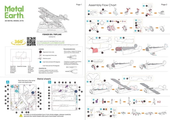 METAL EARTH 3D puzzle Fokker Dr. I háromfedelű repülőgép