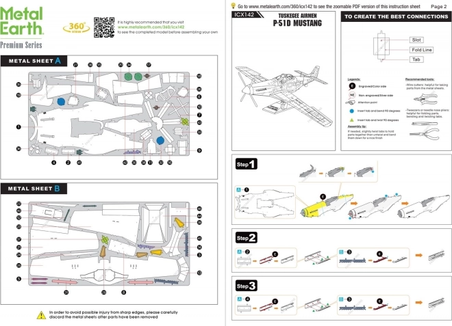 A csomag két acéllemezt, csipeszt és összeszerelési útmutatót tartalmaz. A kész modell méretei körülbelül 15,7 x 19,3 x 7,9 cm. Ajánlott 14 éves kortól.