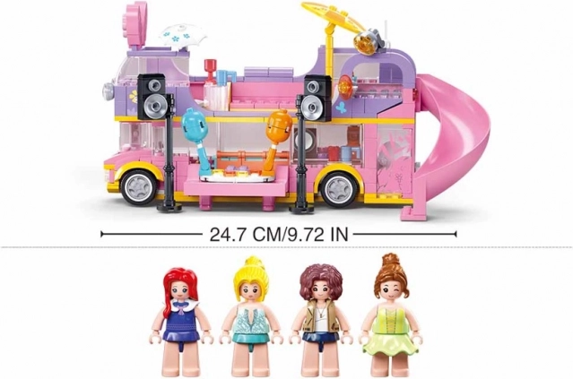 A készlet 412 darabot és 4, mozgatható részekkel rendelkező minifigurát tartalmaz. A LEGO, Cobi vagy Mega Bloks kompatibilitásnak köszönhetően a busz könnyen bővíthető további ötletekkel. Ideális ajándék 6 éves kortól azoknak a gyerekeknek, akik szeretik az építést, a színeket és a zenés világot.
