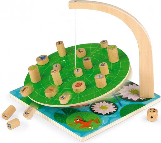 Kinek maradnak az állatkák a tavirózsán a legtovább? A Tavirózsa egy társasjáték, amely fejleszti az ügyességet és a finommotorikát. Hogy életben maradj a tóban, ügyesen és stratégiailag kell haladnod! Helyezd el az állatfigurákat úgy a tavirózsára, hogy ne boruljon fel. A játék célja, hogy az állatok ne essenek le a tavirózsáról. A csomag tartalma: egy fa alaplap függesztett tavirózsával, 42 db fa állatfigura és 1 fa dobókocka. Az a tény, hogy a deszka nem teljesen sík, nincs hatással a termék játszhatóságára. Kis tipp: minél óvatosabban helyezed el az állatfigurát, annál kevésbé mozdul meg a tavirózsa. A játék fejleszti: - ügyesség és finommotorika - stratégiai gondolkodás - koncentráció 6 éves kortól ajánlott.