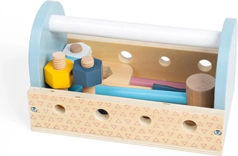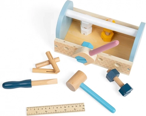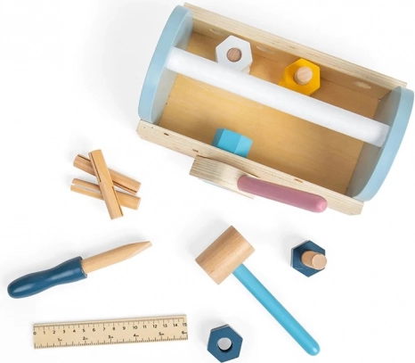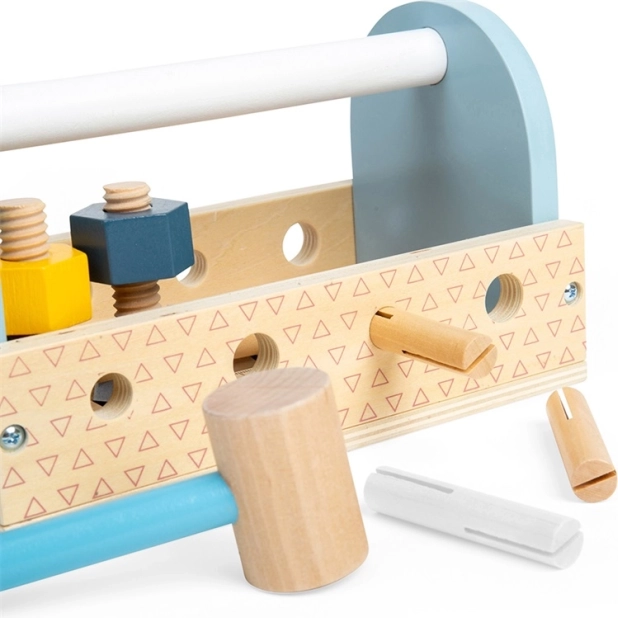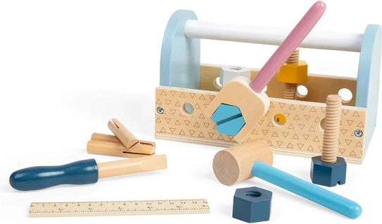 A fa szerszámos láda ideális választás az első szerelő kalandokhoz. A gyerekek kalapálhatnak, húzhatnak és mérhetnek, miközben fejlődik a szem–kéz koordinációjuk, a türelmük és a szókincsük. A kompakt méret és a praktikus fogantyú lehetővé teszi, hogy a készletet bárhová magukkal vigyék.