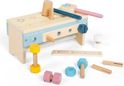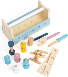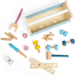 A Fa szerszámos doboz 2 az 1-ben BIGJIGS TOYS egy átgondolt építőkészlet és munkapad egyben. A gyerekek csavarokat húzhatnak meg, szegeket kalapálhatnak, és gyakorolhatják a kéz–szem koordinációt. Játék után minden alkatrész könnyen visszakerül a dobozba.