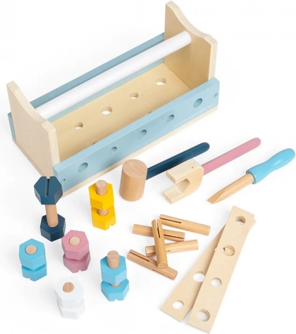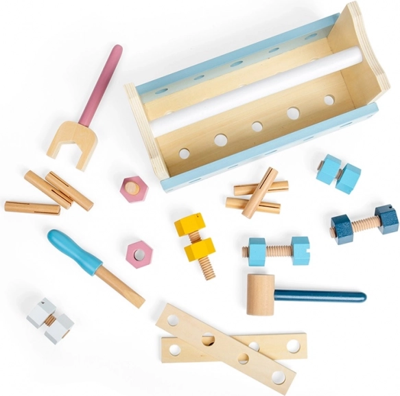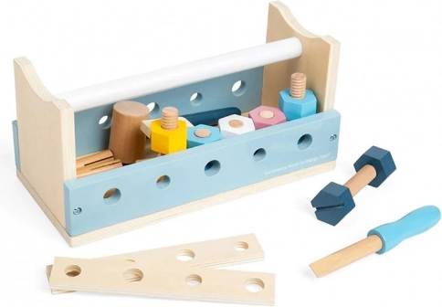 Okos és strapabíró gyerek szerszámkészlet, amely egyetlen fordítással munkapaddá alakul. Tartalmaz kalapácsot, villáskulcsot, csavarhúzót, vonalzót, csavarokat és anyákat. A kompakt méreteknek és a beépített fogantyúnak köszönhetően ideális utazáshoz. FSC® tanúsítvánnyal rendelkező fából készült, fejleszti a finommotorikát, a kreativitást és a szociális készségeket.