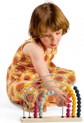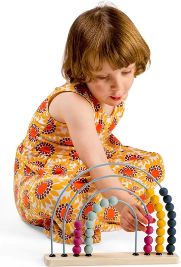 A gyöngyök fém íveken történő tologatása javítja a fogást, a szem–kéz koordinációt és a gyerekek türelmét.
