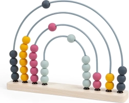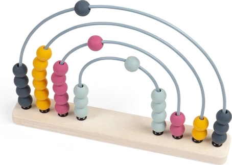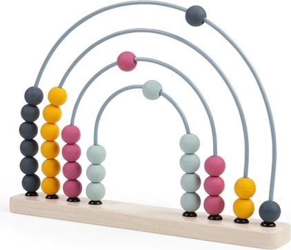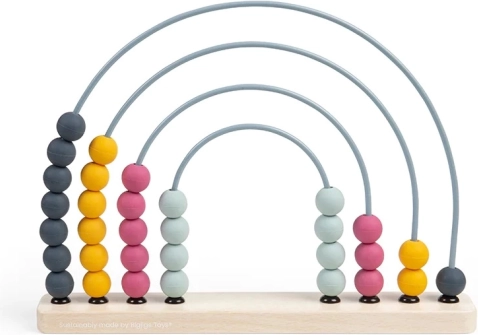 A BIGJIGS TOYS fa szivárvány számoló ideális eszköz az első matematikai lépésekhez. A színes golyók a masszív fém íveken játékra, rendezésre és számolásra ösztönöznek, ezáltal fejlesztik a logikus gondolkodást, a szem–kéz koordinációt és a türelmet.