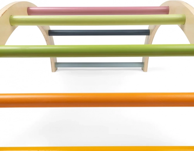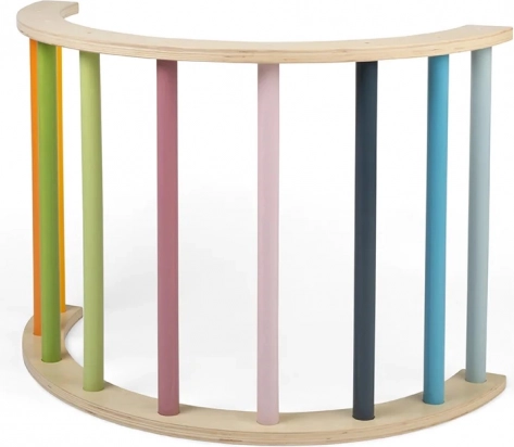 A BIGJIGS TOYS montessori ív univerzális játékelem, amely a gyerekeket természetes mozgásra és felfedezésre ösztönzi. Használható mászókaként, egyensúlyfejlesztő eszközként, takarós kuckó alapjaként vagy csörgők és plüssök felakasztására szolgáló állványként. A pasztellszínű fokok aktivitásra hívnak, és egyben esztétikusan kiegészítik a gyerekszoba berendezését.