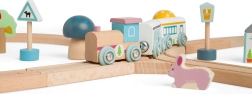 A termék etikusan, FSC® tanúsítvánnyal rendelkező fenntartható fából készült, ami biztosítja, hogy az anyag felelősen kezelt erdőkből származik. A játék teljes mértékben kompatibilis más gyártók vonatpályáival, így könnyen bővíthető és gazdagítható a játékélmény.