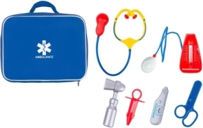 Ez az orvosi készlet ideális minden kis orvoskedvelő számára, akik szeretnének gondoskodni 'betegeikről'. A csomag hét alapvető orvosi eszközt tartalmaz, amelyek különösen érdekes és interaktív játékot biztosítanak: