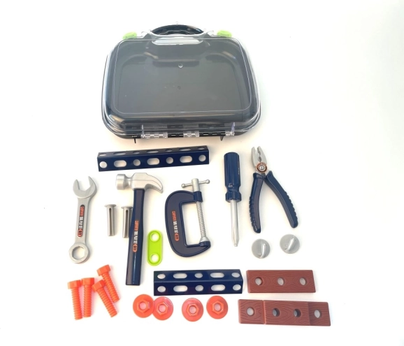 Ideális ajándékkészlet kis barkácsolók számára! Tartalmaz különféle műanyag szerszámokat mint például kalapácsot, csavarhúzót és kulcsot, amelyek lehetővé teszik a gyermekeknek, hogy játékos módon fedezzék fel a javítások és építkezések világát.