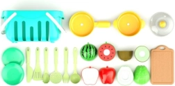 szeletelhető gyümölcs- és zöldségkészlettel a praktikus kosárkában. Tartalmaz 17 különböző részt a kreatív játékhoz.<\div>