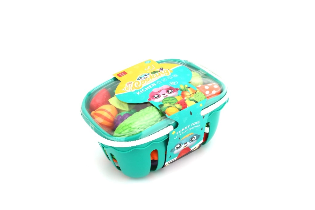 Fejlessze a gyerekek fantáziáját ezzel a színes konyhai készlettel – praktikus kosár tele gyümölcsökkel és zöldségekkel, amelyeket „fel lehet vágni” és újra összeilleszteni. Ideális boltos és főzős szerepjátékhoz. Akár 30 darabot tartalmaz, köztük fedeles kosarat, vágódeszkát, késkéket és különféle élelmiszereket tépőzáras összekapcsolással. A könnyű műanyag és az egyszerű tárolás biztonságos, rendezett játékot biztosít.