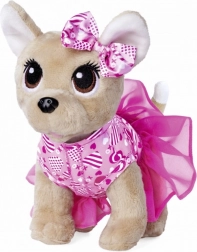 Plüss csivava ünnepi stílusban. A plüss kutyus csillogó, szívecskés mintájú ruhát és hozzá illő masnit visel. Csillogó, szív alakú táskában tárolva. A legjobb barát – a bájos kis csivava 20 cm magas, puha plüssből készült.