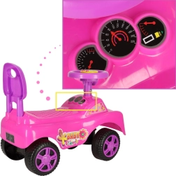 A bájos, rózsaszín tolható jármű segíti a nagymozgások, a koordináció és az egyensúly fejlődését. Könnyű súlyának köszönhetően a gyermek egyszerűen irányítja, a szülők pedig gond nélkül hordozzák. A barátságos „mosoly” és a színes részletek szó szerint csábítanak a vezetésre.