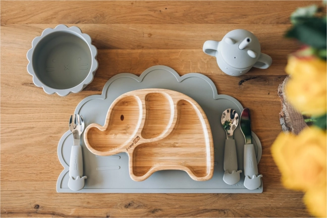 A készlet minden szükséges elemet tartalmaz, hogy gyermeked úgy étkezzen, mint anya és apa.