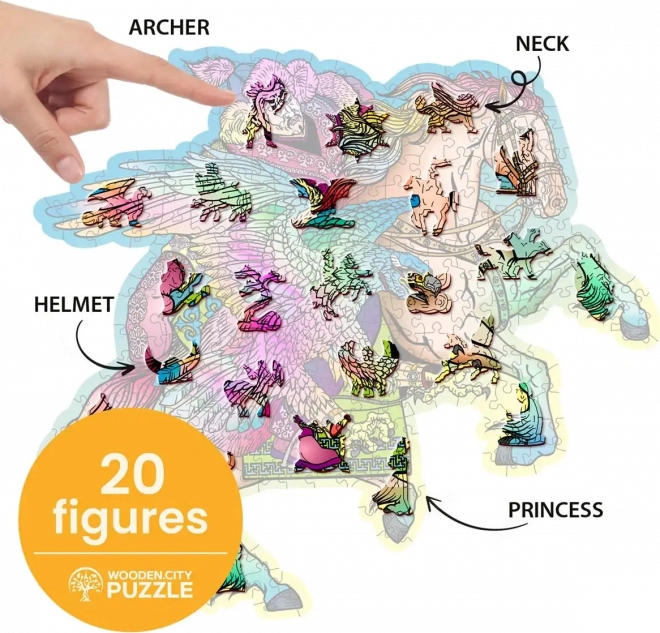 Élje át a különleges kirakós élményt a WOODEN CITY fa puzzle-val, amely lenyűgözi Önt különleges formájú darabjaival. Néhány darab állatok alakját ölti, ami további dimenziót ad a kirakósnak. A lézeres feldolgozásnak köszönhetően a darabok élei simák és pontosak.