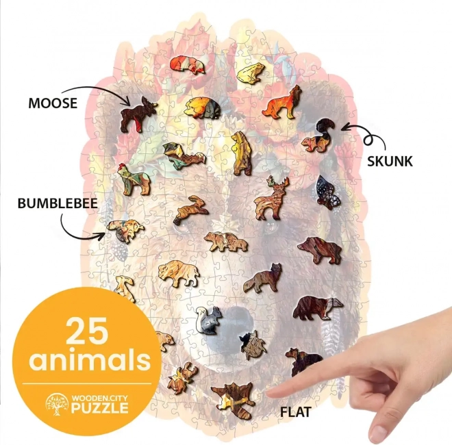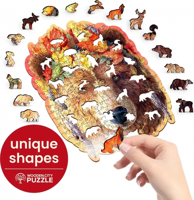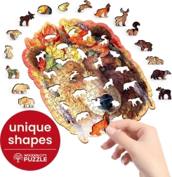 Stílusos Medve fa puzzle a WOODEN CITY márkától egyedülálló élményt kínál. Az állatformájú, egyedi darabokkal való kirakás és a részletes kidolgozás kellemes kihívást jelent minden kirakós játék kedvelőjének.