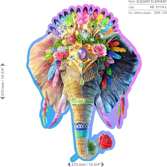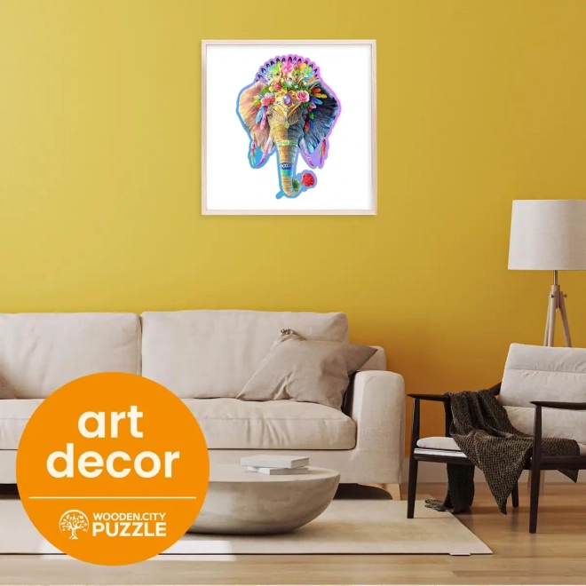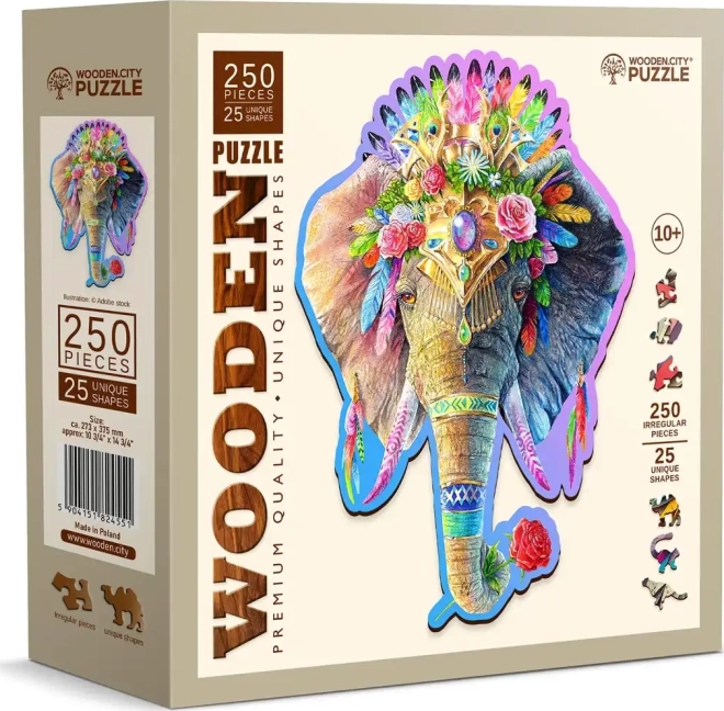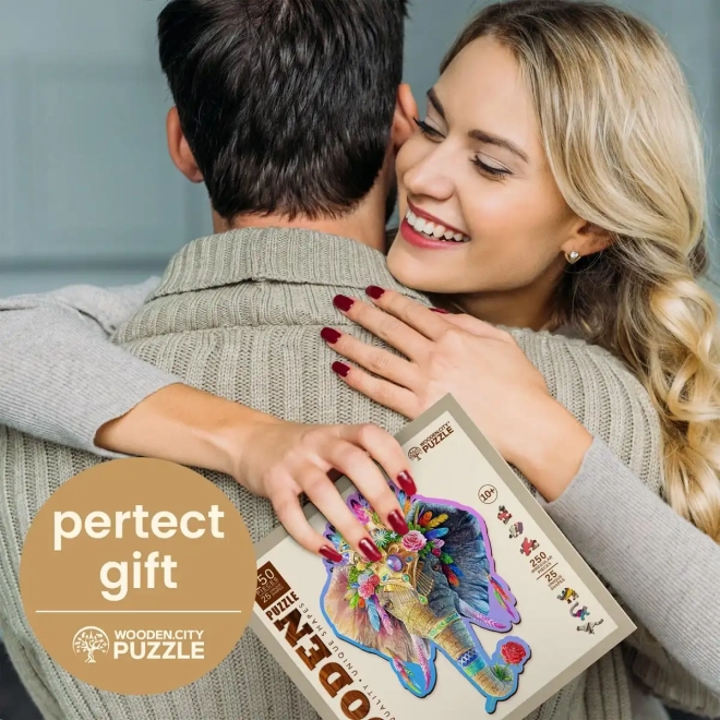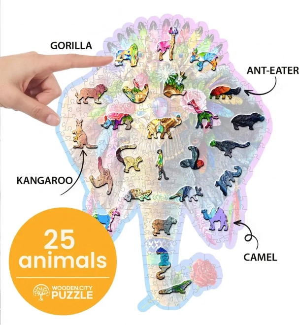 Bemutatjuk a egyedi fa puzzle Elegáns elefántot a WOODEN CITY márkától. A különlegesen formázott darabokkal, amelyek állatmotívumokat tartalmaznak, a kirakós nagyobb kihívást jelent, mint a szokványos puzzlek esetén.