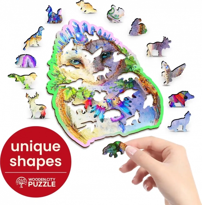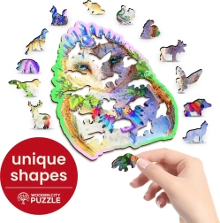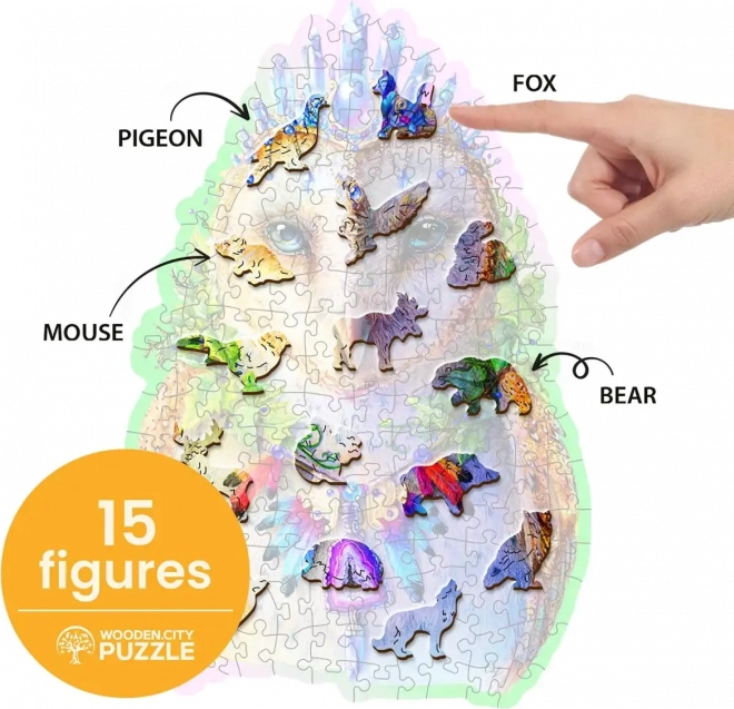 Fasz puzzle Szép bagoly a WOODEN CITY kínál végtelen szórakozást az egyedien formázott darabjaival. Alkosson és fedezzen fel állatformájú darabokkal, amelyeket önálló figurákként lehet felállítani.