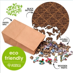 A WOODEN CITY puzzle ismert különleges formájú darabjairól, amelyek klasszikus és innovatív élményt nyújtanak a játékosoknak. A lézeres feldolgozásnak köszönhetően kitűnnek a részletek, amelyek növelik az egész kép esztétikai értékét.