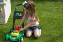 A fűnyíró tolásával a gyerekek javítják egyensúlyukat, koordinációjukat és nagy mozgásaikat, miközben önállóságot tanulnak.