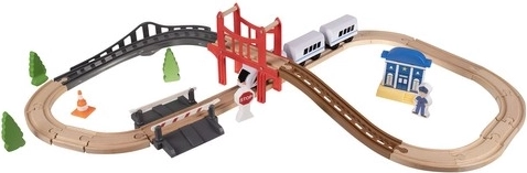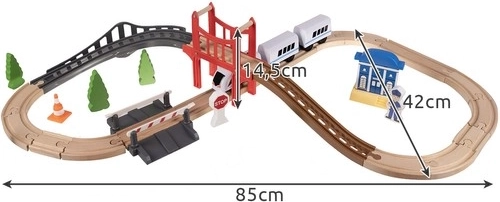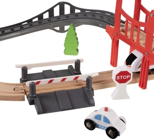 Ez a fa vonatpálya ideális megoldás a kreativitás és a fantázia támogatására a gyerekeknél. Úgy lett tervezve, hogy a gyerekek elmerülhessenek a vasúti szórakozás világában, otthon vagy a szabadban. A készlet összesen 37 precízen kidolgozott elemet tartalmaz, beleértve a hidat és épületeket, amelyek valósághű elemeket adnak a szórakozáshoz.