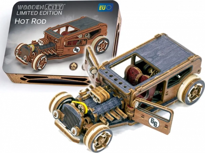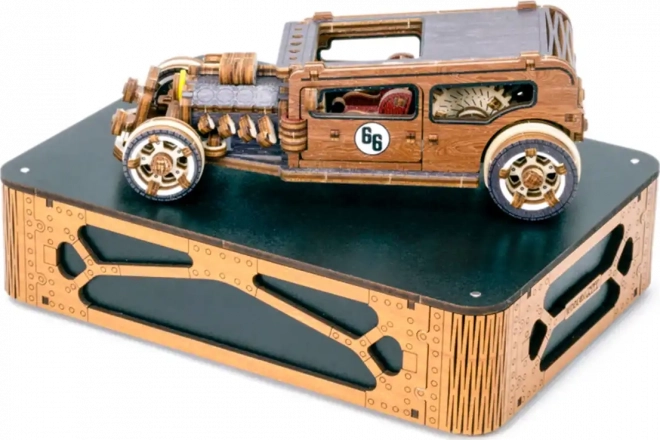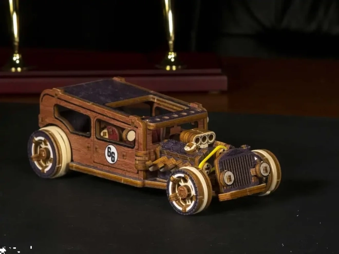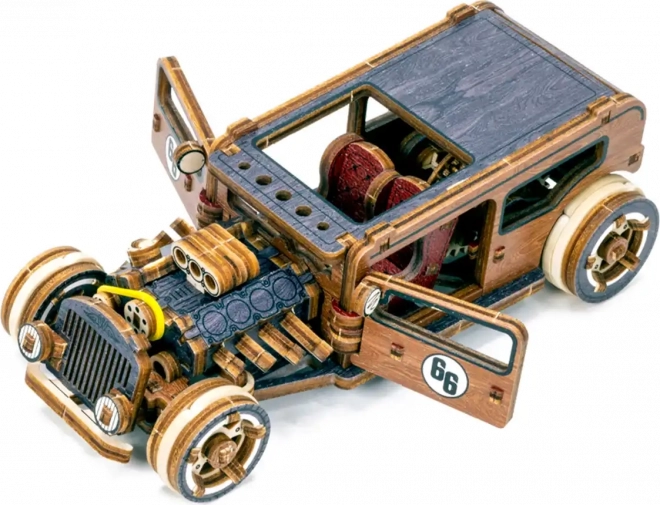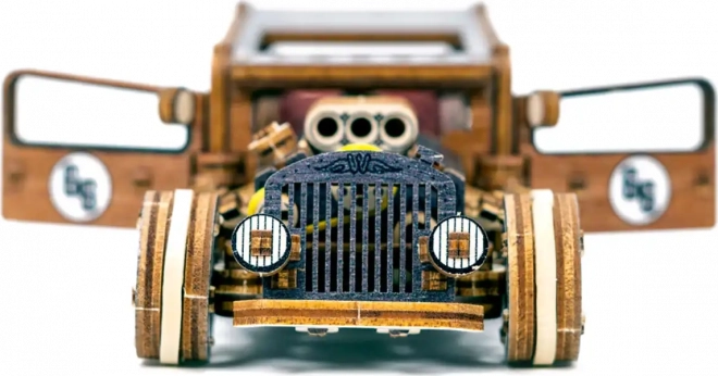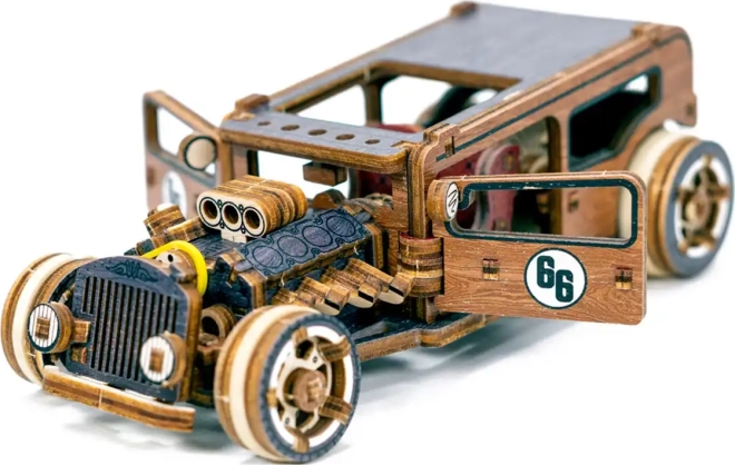 Ez a WOODEN CITY hot rod mechanikus modell 1:32 méretarányban autentikus élményt nyújt az építésben és a mechanikában egyaránt. Belül részletes motor, kétszemélyes ülés és váltókar található, menet közben pedig értékelni fogod a lendkerekes hajtást és a visszatérő kerekeket. A nyírfarétegelt lemezből precízen kivágott elemeknek köszönhetően minden pontosan a helyére kerül – egy csepp ragasztó nélkül.