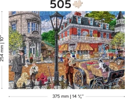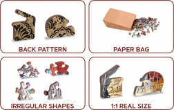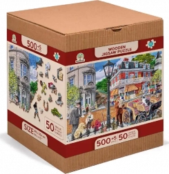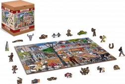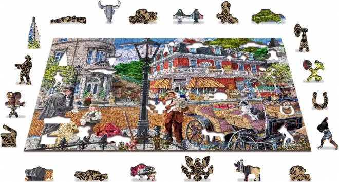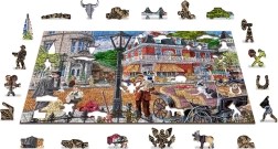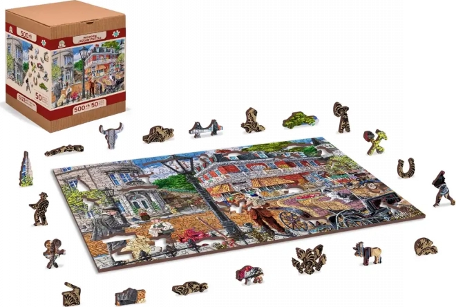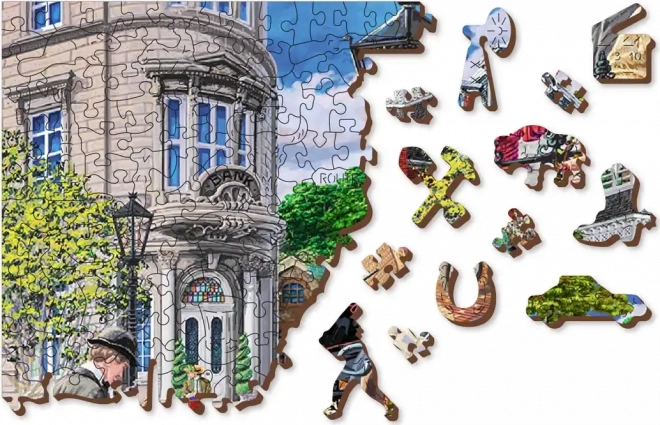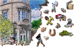 Élvezze a magával ragadó kirakást a WOODEN CITY fa puzzle-jével, amely egy pezsgő történelmi utca színes jelenetét hozza el. A speciálisan formázott elemek finom lézeres részletei fokozzák a szórakozást és az esztétikai élményt – néhány állat- vagy tárgyformájú elemet akár kis figuraként is fel lehet állítani.