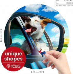 Élvezze a precízen kidolgozott WOODEN CITY fa kirakót vidám kutya motívummal. A lézeres részletkiemelés hangsúlyozza a kép szépségét, és az állat alakú elemek egy részét önálló figuraként is használhatja. A változatos formáknak köszönhetően a puzzle magasabb nehézségi szintű, így mindazoknak örömet szerez, akik kreatív kihívást keresnek.