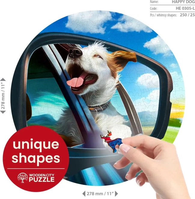 Fedezze fel az összeillesztés örömét a WOODEN CITY Vidám kutya fa kirakóval. A lézerrel kivágott elemeknek és az egyedi állatfigurás formáknak köszönhetően az összerakás nemcsak szórakoztató, hanem kihívást is jelent. Egyedien formázott elemek, szálkamentes, sima élek és környezetbarát, műanyagmentes csomagolás teszik ezt a puzzlet remek ajándékká bármilyen alkalomra.