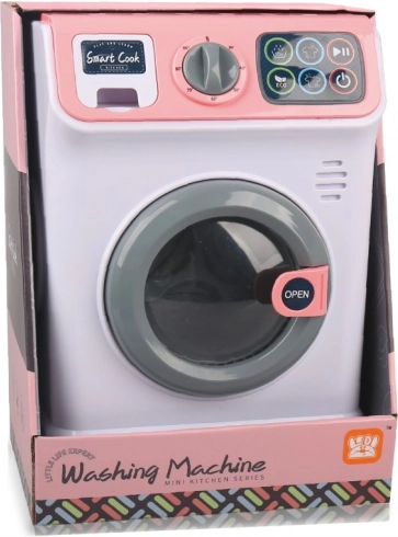 Rózsaszín mosógép hang- és fényhatásokkal ideális gyerekek számára, akik szeretnek felnőtteket utánozni házimunkák közben. Az elemek mellékelve vannak.