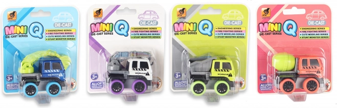 A 6 cm hosszú miniatűr fém építőipari autó örömet szerez a munkagépek kis rajongóinak. Tartós fém kivitel, visszahúzós meghajtás és négy közkedvelt változat: markoló, daru, billenőplatós és betonkeverő.